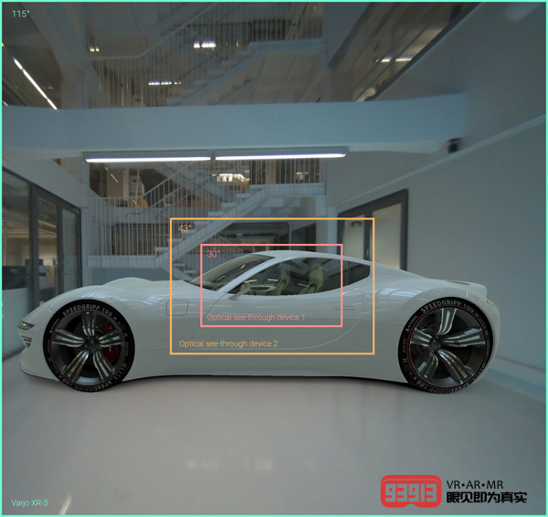 據(jù)悉,這兩款頭顯均采用了Varjo的“人眼級分辨率”顯示屏,該顯示屏分別由單眼分辨率為1920 x 1920(70 PPD)及單眼分辨率為2880 x 2720(30 PPD)的兩塊屏幕組成。