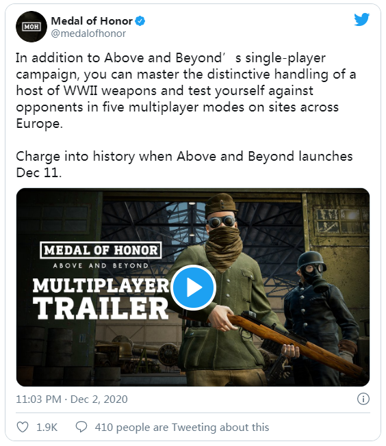 據(jù)悉,《榮譽勛章:超越巔峰》多人模式共有“Mad Bomber”、“Domination”、“Team Deathmatch”、“Deathmatch”、“Blast Radius”五大全新戰(zhàn)斗關卡,每個關卡都支持12名玩家(包括人類及AI玩家)同時在線,參與戰(zhàn)斗的每名玩家都將穿著盟軍或納粹軍裝進行激烈對戰(zhàn)。此外,該多人模式支持跨平臺游玩,因此Oculus Rift玩家可以與HTC Vive及Valve Index玩家組隊加入戰(zhàn)斗。