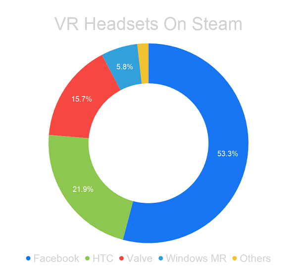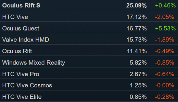 此外,從以上圖表可以看出,Oculus頭顯的占有率已達(dá)到53%,這是自Valve在2月優(yōu)化其Steam平臺(tái)硬件調(diào)查數(shù)據(jù)以來(lái),Oculus頭顯占有率首次突破50%。另外Valve為更方便統(tǒng)計(jì)Steam平臺(tái)Quest使用數(shù)據(jù),其將Quest&Quest 2歸類(lèi)為“Oculus Quest”,這使得Quest頭顯的占有率從11.24%躍升至16.77%,這是Oculus自2019年5月發(fā)布Rift S以來(lái)最大的月度漲幅。