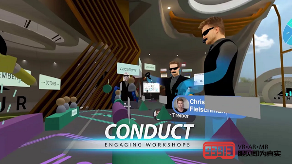 Arthur為小型企業(yè)提供了一個(gè)VR場所,讓使分散在不同地理位置的團(tuán)隊(duì)以及因新冠肺炎疫情而隔離的團(tuán)隊(duì)能夠在類似于物理辦公室的虛擬空間中開會(huì)和管理他們的工作。你也可以在VR中到飲水機(jī)旁與人聊聊天,或者可以利用3D音頻并拉著某人到私人空間進(jìn)行一對(duì)一交流。用戶還可以一起觀看視頻,向小組展示幻燈片演示或者進(jìn)行團(tuán)隊(duì)破冰活動(dòng)。Arthur的虛擬空間中可以同時(shí)容納超過40名用戶。