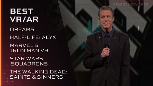 由V社研發(fā)的VR游戲「半衰期:愛莉克斯」在今年The Game Awards評選中共獲得「最佳VR/AR游戲」、「最佳游戲指導」、「最佳聲效設計」、「最佳動作游戲」四項提名,但最終只獲得了「最佳VR/AR游戲」這一獎項。