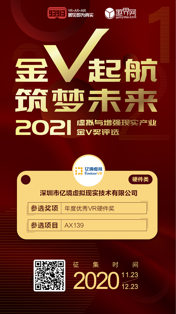 2021虛擬與增強(qiáng)現(xiàn)實(shí)產(chǎn)業(yè)「金V獎(jiǎng)」由93913虛擬現(xiàn)實(shí)網(wǎng)與邀界網(wǎng)共同主辦,旨在搭建一個(gè)鏈接優(yōu)質(zhì)資源、推動(dòng)產(chǎn)業(yè)發(fā)展的平臺(tái),并通過年度評(píng)選活動(dòng),發(fā)布2020年度的優(yōu)秀獎(jiǎng)項(xiàng),向XR產(chǎn)業(yè)的卓越者們致敬。