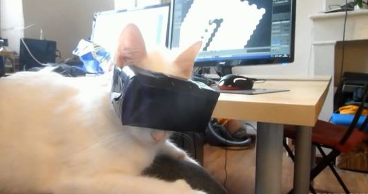 國(guó)外youtube上一個(gè)叫kominaaa的網(wǎng)友上傳了自家貓咪體驗(yàn)VR游戲的視頻,這是人類VR設(shè)備第一次戴在喵星人頭上,值得受到廣泛關(guān)注。