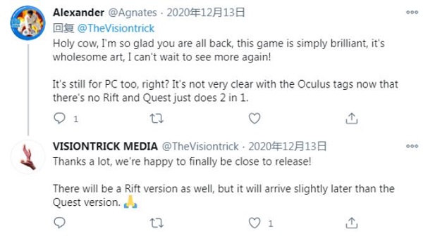 雖然目前該作暫時只推出Quest版本,但Visiontrick Media也確認未來將發(fā)布Rift版本。