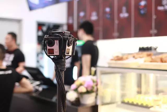 雖然吃的東西不是虛擬現(xiàn)實的~但餐區(qū)也不離geek本色,一圈gopro架起來組成720度全景VR攝像,這難道是要直播我吃飯的樣子嗎??