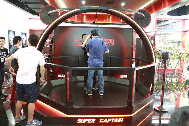 體驗街中心有一個“大米奇”的平臺裝置。它是“超級隊長Fantasy“,爆款單品游戲。里面可是配備了目前最先進VR技術的HTV VIVE壕華設備!