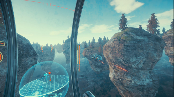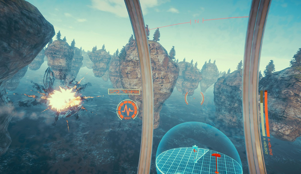 「Geostationary」游戲節(jié)奏快速且玩法簡單,從游戲所呈現(xiàn)的戰(zhàn)斗場景來看,玩家所駕駛的太空飛船將與外星飛船在一片有著無數(shù)浮空巨石的海域上進(jìn)行激烈空戰(zhàn)。