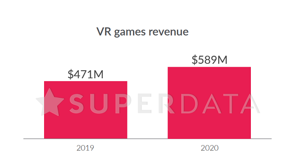 Superdata數(shù)據(jù)顯示2020年VR游戲營收增長25%——從4.71億美元躍升至5.89億美元,這很大程度上歸功于Valve屢獲殊榮的VR游戲「半衰期:愛莉克斯」,這款游戲發(fā)售后半年銷量達到190萬份。與此同時,Oculus Quest游戲也在其中發(fā)揮重要作用,F(xiàn)acebook此前曾透露該平臺有10款游戲的營收超過200萬美元。