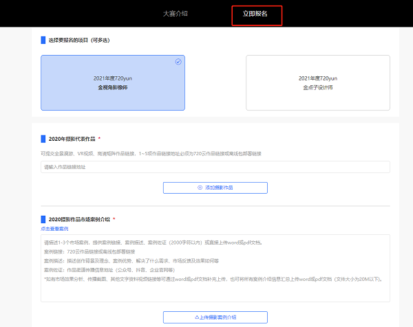 -通過(guò)720云金云獎(jiǎng)官網(wǎng),點(diǎn)擊立即報(bào)名,填寫(xiě)報(bào)名信息。
