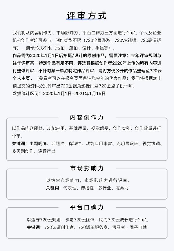 93913合作伙伴——720云推出2021年度大賽720金云獎(jiǎng),旨在通過(guò)大賽尋找杰出影像師和設(shè)計(jì)師(不僅限于720云平臺(tái)用戶,如有720富媒體內(nèi)容生產(chǎn)能力,均可注冊(cè)賬號(hào)報(bào)名參與)。