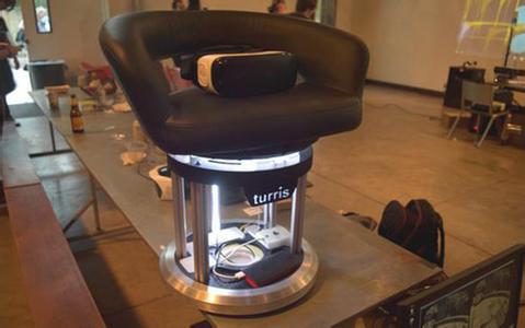 Turris:首個(gè)虛擬現(xiàn)實(shí)座椅,讓你全方位地體驗(yàn)虛擬內(nèi)容,實(shí)現(xiàn)用戶在虛擬現(xiàn)實(shí)中的自由移動(dòng),配備的樞軸運(yùn)動(dòng)跟蹤傳感器讓用戶解放雙手(通過(guò)Sixense Stem或者Oculus Rift進(jìn)行輸入),用戶通過(guò)腿和身體的旋轉(zhuǎn)就能控制他們的動(dòng)作。Turris嵌入了有數(shù)據(jù)連接的 PC——不再需要鍵盤和鼠標(biāo)。你只要一部頭顯和Turris椅子就能暢享VR游戲了。Praevidi還沒(méi)有公布這個(gè)設(shè)備的具體發(fā)布日期。