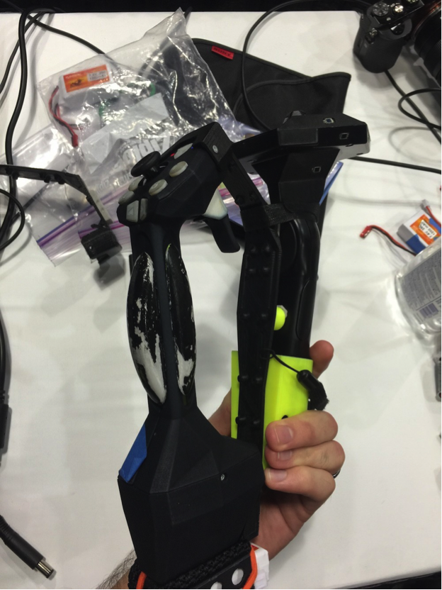 Tactical Haptics:觸覺(jué)反饋控制器,特殊的手柄讓用戶能感覺(jué)到虛擬物件的“真實(shí)”重量。這項(xiàng)技術(shù)兼容所有的運(yùn)動(dòng)控制器界面??刂破靼咽稚系幕瑒?dòng)平板創(chuàng)造出了動(dòng)覺(jué)反饋,讓你感受到虛擬空間的動(dòng)作。這款控制器注入了新型的觸覺(jué)反饋技術(shù),它使用手上的摩擦力模仿你在虛擬現(xiàn)實(shí)中伸出手抓住物品時(shí)的觸覺(jué),還有諸如抬高,捕捉,推動(dòng)等其他動(dòng)作。