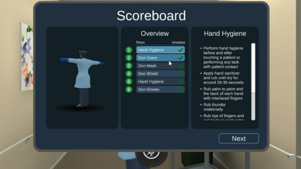 Virtro表示,身處養(yǎng)老院的老人往往更容易感染新冠病毒,而VR醫(yī)療模擬培訓(xùn)應(yīng)用Virtro既能幫助醫(yī)護(hù)人員進(jìn)行PPE培訓(xùn),又有助于他們以合適的方式與老年患者進(jìn)行交流。