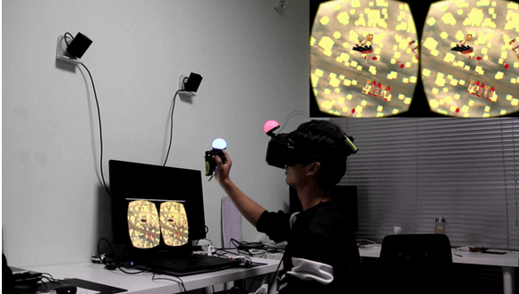 目前以 GearVR 為代表的移動 VR 頭顯,與三大 PC VR 頭顯相比,一個突出的不足就是不能追蹤頭部的空間運動。Gear vr 只能檢測到各方向轉(zhuǎn)頭的 3 自由度,而頭部在空間中前進、后退等移動則不能檢測,也就是說 Gear vr 顯示不隨在房間行走變化。而 PC VR 頭顯如 HTC Vive,可以追蹤到轉(zhuǎn)頭和平移的 6 自由度,這樣人就可以在虛擬空間中走動,沉浸感會強不少。