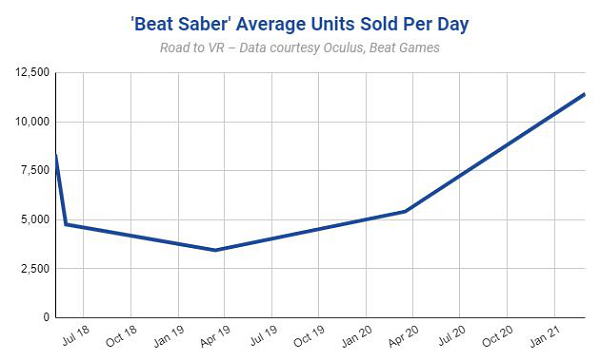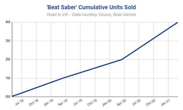通過下圖「節(jié)奏光劍」研發(fā)團隊分享的一些銷售里程碑,我們可以看到,「節(jié)奏光劍」的銷售速度仍在增長。