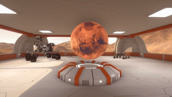 「火星任務(wù)」體驗始于火星表面的一個科技博物館,體驗者可以在該博物館內(nèi)看到來自中國、歐洲及美國的三輛火星車。