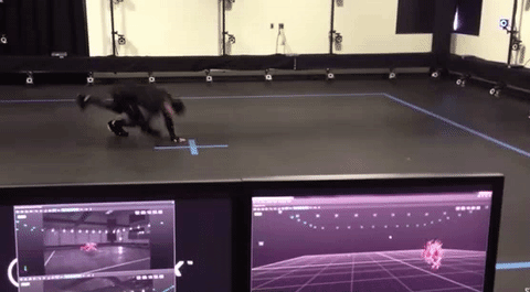 穿好帶有標(biāo)定點(diǎn)的裝備服,在幕布背景下實(shí)現(xiàn)動(dòng)作捕捉場(chǎng)景。對(duì)于任何一部你所能想到的好萊塢大片,這都是非常常見的一種電影動(dòng)作捕捉的形式。