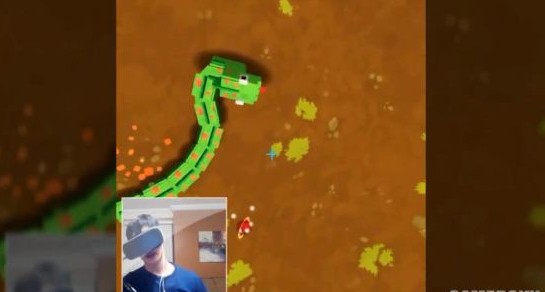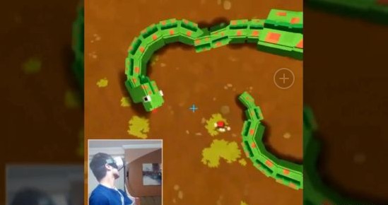 貪吃蛇VR化后,難度驟然上升,戴著Gear VR再看眼前的綠色小點(diǎn),一條活靈活現(xiàn)的小蛇赫然浮現(xiàn)。在開始之前先轉(zhuǎn)動(dòng)一下脖子吧,因?yàn)樵谥蟮年P(guān)卡中你根本無法停下來,全靠你的扭脖神功來控制它了伙計(jì)~貪吃蛇會(huì)根據(jù)你脖子扭動(dòng)跟蹤變化行徑,解放了你的雙手,綁架了你的脖子~