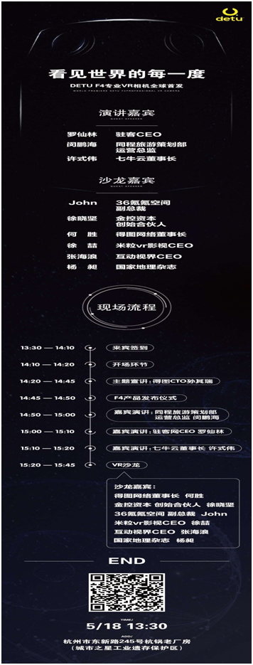 5.18日浙江得圖網(wǎng)絡(luò)有限公司在杭州召開DETU F4發(fā)布會(huì),DETUF4是得圖科技研發(fā)的一款VR全景直播相機(jī),實(shí)現(xiàn)360°×360°超高清全景視頻拍攝、U8K 24FPS/4k 60FPS全景視頻、4K全景直播;4960萬背照式傳感器、獨(dú)創(chuàng)四目超廣角魚眼鏡頭等卓越性能。