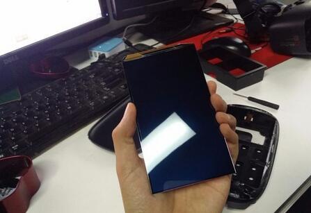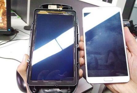 與筆者的三星NOTE3對比,屏幕尺寸一致??梢耘袛啻笈驟2使用的是5.7寸的三星OLED分辨率為1920*1080的高清屏。
