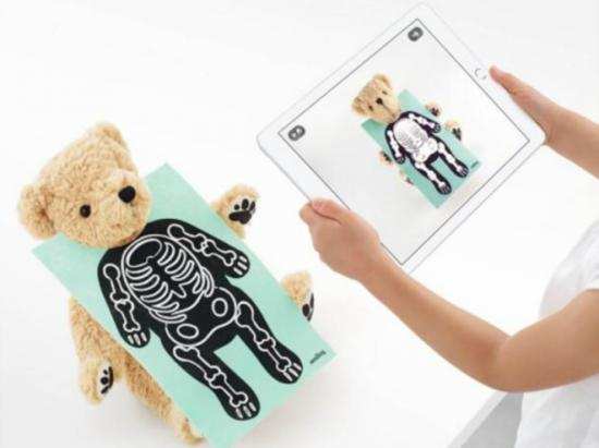 如蘋果曾在官網(wǎng)販賣過一款由新創(chuàng)公司Seedling出產(chǎn)的AR增強現(xiàn)實玩具——泰迪熊Parker。熊本身沒有電池、相機、Wi-Fi連網(wǎng)功能,但通過盒內(nèi)所附的木質(zhì)玩具溫度計、玩具聽診器等相關(guān)配件以及Parker App,孩子便能替Parker照X光、喂它吃藥,幫它量體溫等。