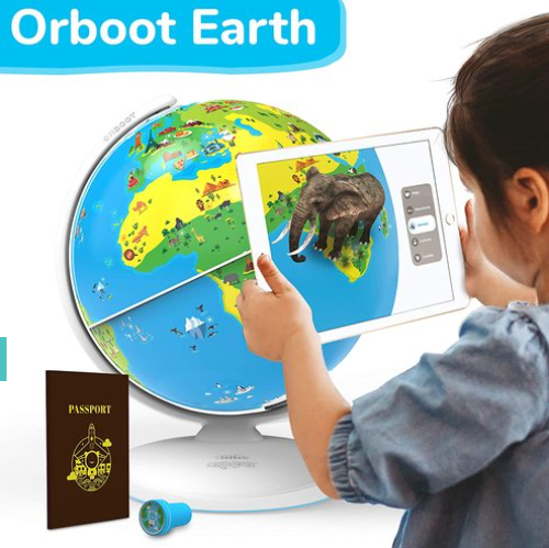 Orboot情境交互式地球儀也運用相似的原理,利用AR技術(shù)在移動設(shè)備上顯示與現(xiàn)實結(jié)合的生動3D圖像,可瀏覽世界地理、歷史文化、生物介紹等各類知識百科,還包含問答測驗等互動模式。