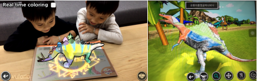 一些著色涂鴉本也加入了AR元素,如韓國VUIDEA-AR兒童互動繪本就能通過手機App將涂完顏色的畫像直接變成立體動畫。“我很喜歡這個繪本,因為它里面有很多恐龍,畫完之后它會變成真正的恐龍。”體驗過VUIDEA-AR繪本的小朋友表示。