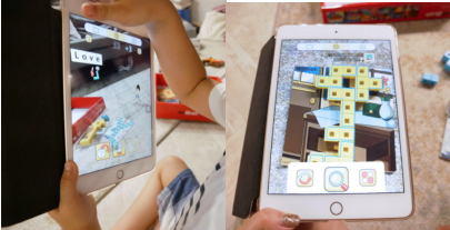 “創(chuàng)作型”互動玩具例如AniBlock安尼博樂推出的AR拼圖積木,可在小朋友依照圖卡放置同顏色的積木拼出成品后,藉由手機App掃描“召喚”出AR角色進(jìn)行小游戲,其中一些游戲還帶有英語單字教學(xué)功能。