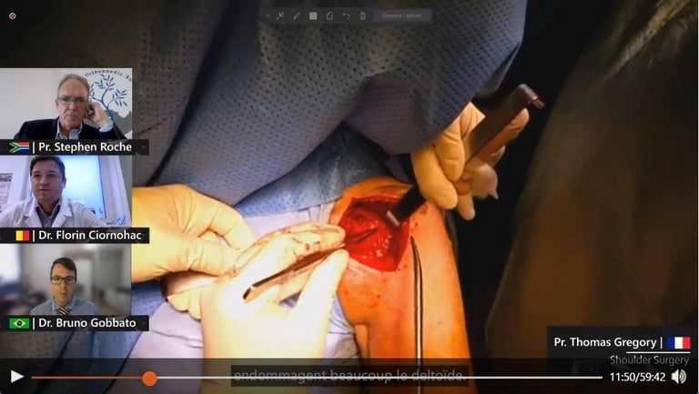 整形外科醫(yī)生Thomas Gregory在法國的手術(shù)室中戴上了HoloLens 2,并與分別位于巴西、比利時(shí)、南非的三名外科專家——Stephen Roche、Bruno Gobbato和Jean Florin Ciornohac“連麥”。