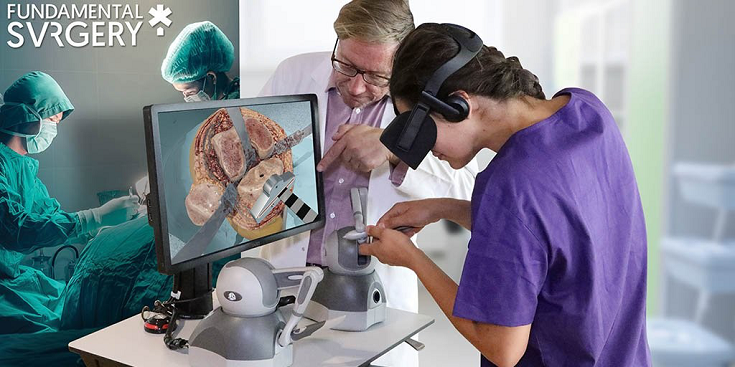但是僅憑圖像來進(jìn)行學(xué)習(xí)是不夠的,特別是對于更專業(yè)的手術(shù)來說。如果想要學(xué)生能夠在實(shí)踐中進(jìn)行學(xué)習(xí),VR就變成了一個(gè)理想的平臺,讓他們能夠磨練自己的技能,但僅靠VR無法模擬逼真的觸覺,無法感受到手術(shù)刀穿透皮膚或與骨骼的碰撞,這是模擬培訓(xùn)仍然缺失的一塊拼圖。