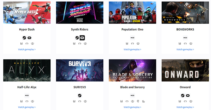 目前bHaptics官方支持的游戲包括「半衰期:愛莉克斯」、「劍與魔法(Blade and Sorcery)」、「Onward」、「Boneworks」以及「上古卷軸5:天際VR」等。