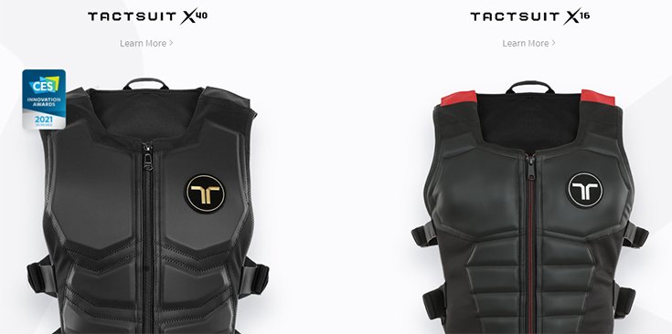 bHaptics目前在官網(wǎng)上售賣兩種規(guī)格的力反饋背心,分別是300美元的TactSuit X 16(配備16個力反饋點)和500美元的TactSuit X 40(配備40個力反饋點),同時還支持在面部、手、四肢和腳上設(shè)置額外的力反饋單元。