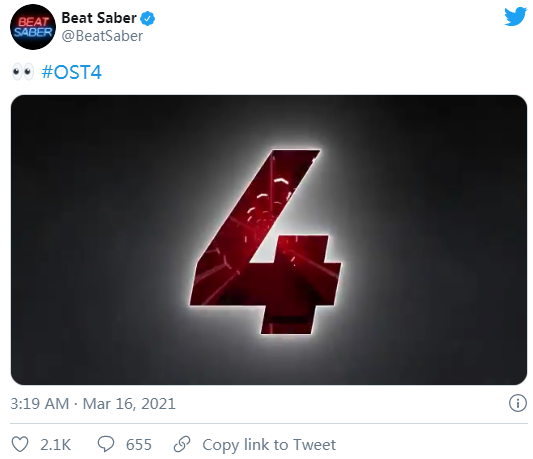 雖然該DLC還未發(fā)布,但Beat Games在推特上確認(rèn)“OST 4”將面向「Beat Saber」玩家以及兼容VR頭顯免費(fèi)推出(包括PSVR),甚至還可能推出一個(gè)全新游戲場景。