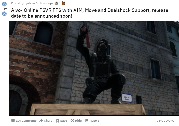 據(jù)外媒UploadVR報道,近日,荷蘭游戲工作室Mardonpol在reddit論壇透露了旗下PSVR多人VR射擊游戲「Alvo」即將發(fā)布的消息,該作兼容PS Aim/Move手柄及Dualshock 4游戲手柄。
