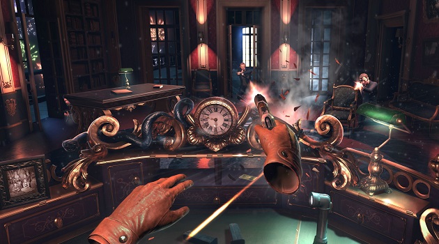 《倫敦大劫案》中游戲玩法的第一個例子是在PlayStation VR上展示出來的。在“審訊”中,玩家被綁在椅子上無法動彈,而且面臨著一個巨大又丑陋的壯漢的恫嚇。接著游戲進入倒敘模式,玩家會進入一個固定的第一人稱視角的射擊劇情(FPS),并在這里擔任劫案的幕后黑手和控制者。 目前《倫敦大劫案》的第二部分游戲玩法是沿著倫敦市大街小巷的高速追捕。你在第一個游戲板塊中遇到的那個壯漢就是你逃跑時的司機,你一邊逃命一邊武裝自己以把貨車和摩托車上的那些敵人一掃而空。