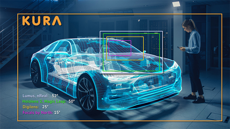 而從2016年至今,Kura對外公布的產(chǎn)品參數(shù)上“提升”了不少——從2016年的100°視場角到2018年的135°視場角、2000nits亮度,再到如今的150°視場角、4000nits亮度,但卻依然使用幾乎相同的視頻來演示產(chǎn)品。