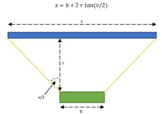 鏡片尺寸(s)、FOV(v)、適眼區(qū)(b)、瞳孔到鏡片的距離(出瞳距離r,eye relief)之間的關(guān)系近似符合: