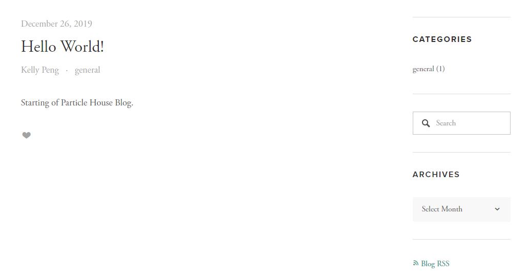 同時我們還注意到,Particle House網(wǎng)站的第一條博客「Hello World!」發(fā)布于2019年12月26日,里面附文「Starting of Particle House Blog」。