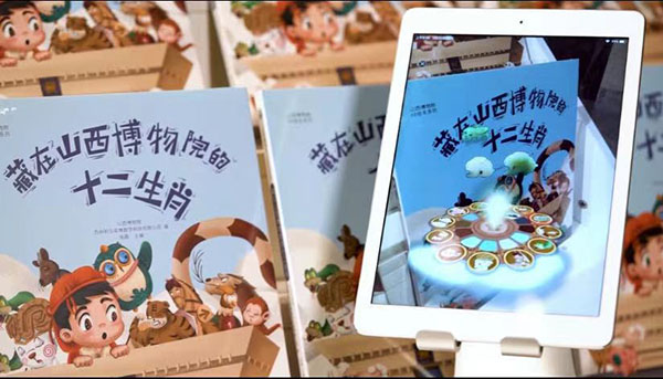 山西博物院文創(chuàng)發(fā)展部于2020年4月出版的《藏在山西博物院的十二生肖》繪本,包含了十二件與十二生肖呼應的館藏文物,十二個文物動畫形象,十二個通俗易懂的故事,借助AR(增強現(xiàn)實)技術(shù),用手機或平板電腦掃描繪本中AR點位,書本上靜止的一件件文物、動物形象就能“活”起來,把背后的歷史故事、文化內(nèi)涵生動形象地展示在屏幕上,將篇幅有限的繪本讀物,擴展成為博物館與讀者間的無限鏈接。
