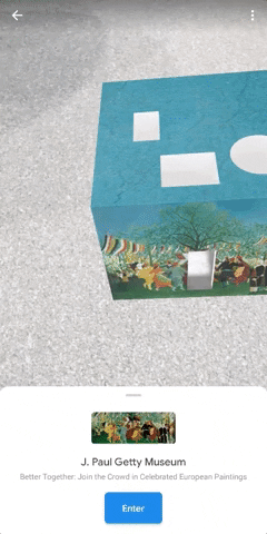 其中「Brushes with the World」主題的Pocket Gallery還專門加入了AR語(yǔ)音導(dǎo)覽功能,當(dāng)用戶觀看喬治婭·奧·吉弗(Georgia O’keeffe,20世紀(jì)初葉成名的杰出女畫家)、葛飾北齋(Hokusai,日本江戶時(shí)代的浮世繪畫家)、Habeeb Andu(尼日利亞視覺(jué)藝術(shù)家)等人的作品時(shí),將會(huì)有旁白和音效講述作品的背景。