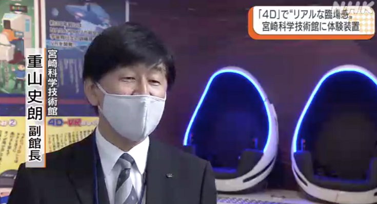 隨后,NHK主持人就大朋VR 4D-VR項(xiàng)目采訪了數(shù)位小朋友和館方代表。小朋友在體驗(yàn)過4D-VR技術(shù)后表示受益良多:在VR一體機(jī)中得到沉浸式的科普。宮崎科技館副館長重山史朗也受訪認(rèn)可大朋VR 4D-VR項(xiàng)目的價(jià)值:“很榮幸可以以此為契機(jī),能培養(yǎng)到將來有至于成為科學(xué)家,影視技術(shù)者的孩子們?!?/p>