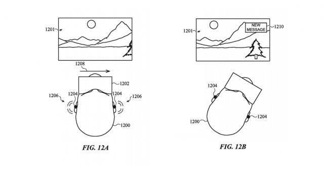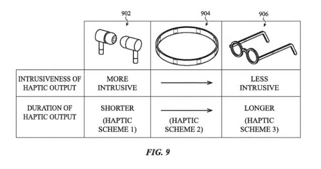 蘋果的另一項專利(于2018年11月提交并于上個月獲得批準(zhǔn))則設(shè)想了頭戴式觸覺反饋設(shè)備,用于幫助將用戶的注意力引向其視野之外的物體。