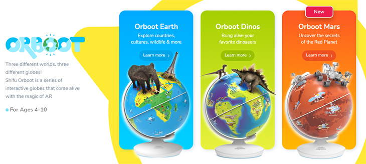 PlayShifu的首個旗艦產(chǎn)品是基于AR技術(shù)的地球儀——Orboot,與應(yīng)用程序結(jié)合使用時,可以為兒童提供有關(guān)國家和地區(qū)的更多信息,包括地圖、文化、古跡、發(fā)明、美食以及動物等。