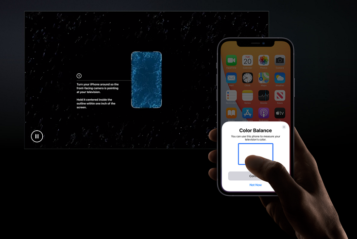 為了在不同品牌的電視上均能達成更好的顯示效果,新款Apple TV可以與iPhone配合來調節(jié)畫面的色彩平衡。