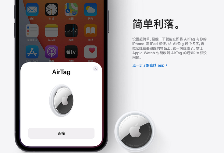 AirTag 是一款能幫用戶追蹤各種物品的外設,可以掛在鑰匙串上或者塞在背包里。用戶打開「查找」App時,除了能追蹤自己的 Apple 設備,還能看到鑰匙和背包這些物品的具體位置,對于喜歡丟三落四的人來說相當實用。