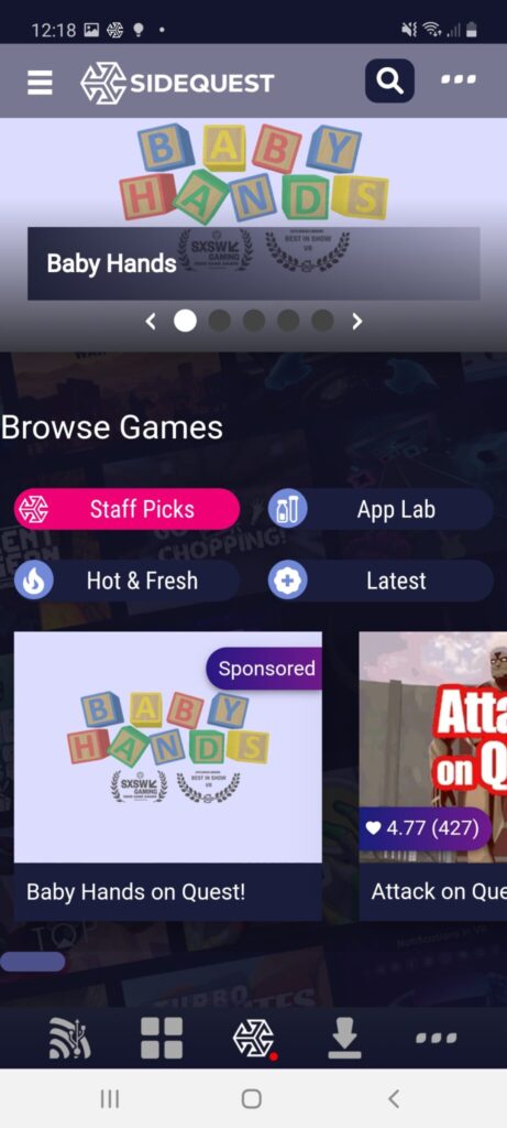 以往SideQuest始終依賴通過PC將VR內(nèi)容側(cè)載至Quest,但這并不是一種無縫體驗,而隨著SideQuest安卓版的發(fā)布,Quest用戶發(fā)現(xiàn)并體驗早期VR內(nèi)容和游戲的過程更加容易。