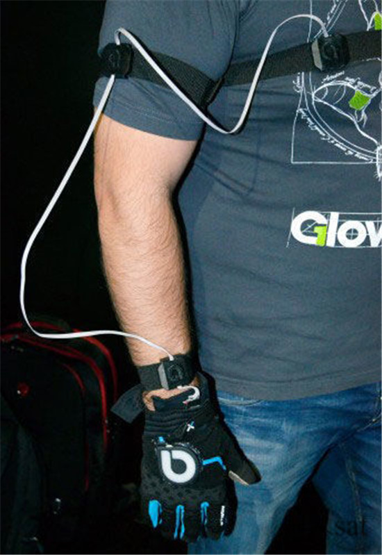 手套能夠定位跟蹤我的手臂,我可以伸手去抓我前面的東西,同時(shí)還能夠跟蹤我的手腕的方向以及我手指的動(dòng)作。我的手臂和胸部也能夠跟蹤,并把動(dòng)作信息準(zhǔn)確地復(fù)制到虛擬現(xiàn)實(shí)中去。在做抓取動(dòng)作時(shí),Gloveone 不是使用通常的光學(xué)和手勢(shì)檢測(cè),而是巧妙地使用電容傳感器來(lái)檢測(cè)壓力,這比其他方法更有效果。