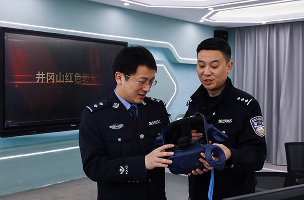 進入“井岡山革命博物館”VR 體驗時,每一件陳列的文物都凝聚著一段不可磨滅的記憶,講述著一段難忘動人的故事,黨微、黨的一大舊址、朱毛會師、朱德的扁擔……一一再現(xiàn)了共產(chǎn)黨人堅定不移的革命信念和艱苦奮斗的作風,激勵民警銘記歷史、不忘初心,牢記使命、不懈奮斗。