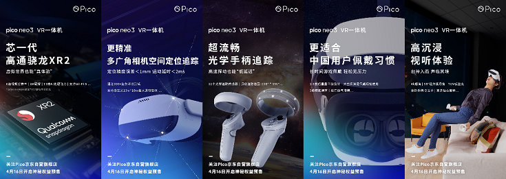 據(jù)悉,早在4月13日左右,Pico官方便已透露部分Neo 3的硬件參數(shù)信息,并持續(xù)放出硬件海報(bào),從芯片、追蹤、佩戴等維度全面解析Neo 3新品。