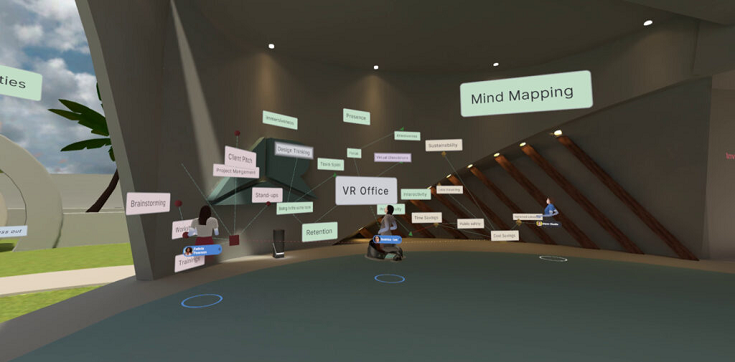 不僅如此,「Arthur」專業(yè)版還提供了一些額外的功能以供企業(yè)用戶體驗,在該版本中VR辦公室可容納50多名用戶同時在線,這將使大型企業(yè)能夠召開大規(guī)模的內(nèi)部會議,而Audio Zones的加入將支持與會人員進行私聊,另外語音、文本功能的推出可以使用戶在會議時錄音以生成筆記。